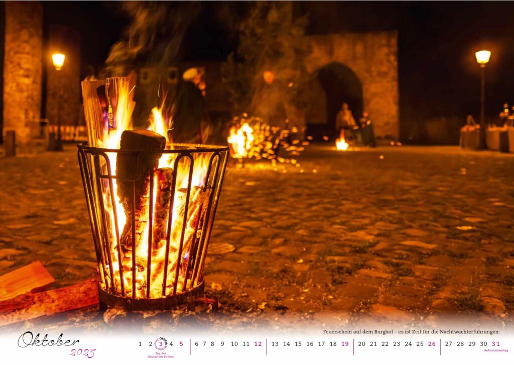 Neben der Kennzeichnung der Feiertage sind auf ihm auch die Tage gekennzeichnet, an denen das Burg- und Heimatmuseum geöffnet ist sowie im Dezember die Burgweihnacht stattfindet.