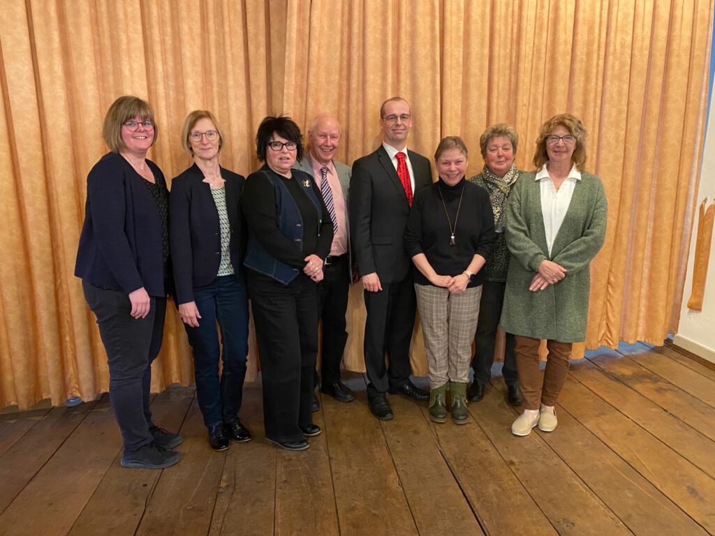 Bild: v.l.n.r.: Nicole Albrecht, Rosi KLaus (Schatzmeisterin), Marlies Hoffmann, Ulrich Pettke (Vors.), Sven Groneberg, Christiane Schütrumpf (stellv. Vors.), Evelyn Pettke (Schriftführerin), Corinna Hohmann.